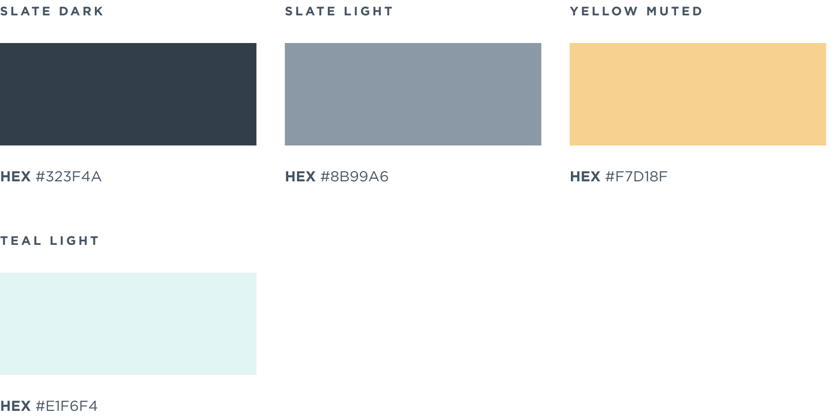 Secondary brand colors are incorporated throughout the design to provide depth and highlight important pieces of content. Please note that Slate Dark and Slate Light are the same as our brand colors FM Slate Dark and FM Slate Light.